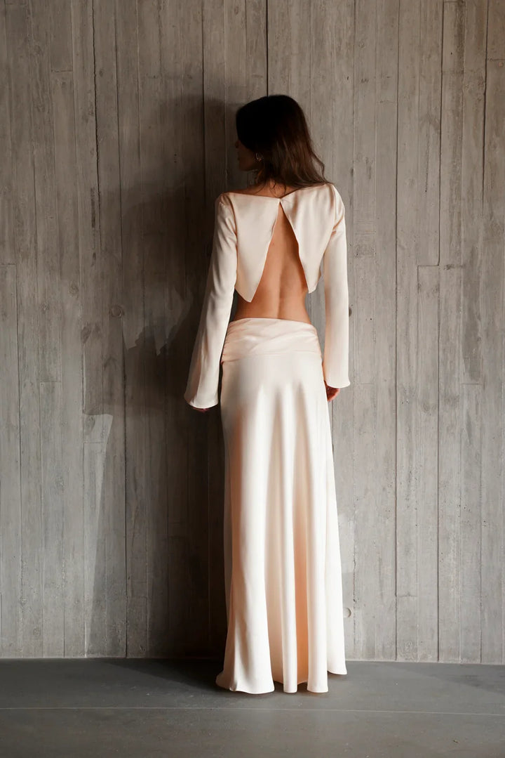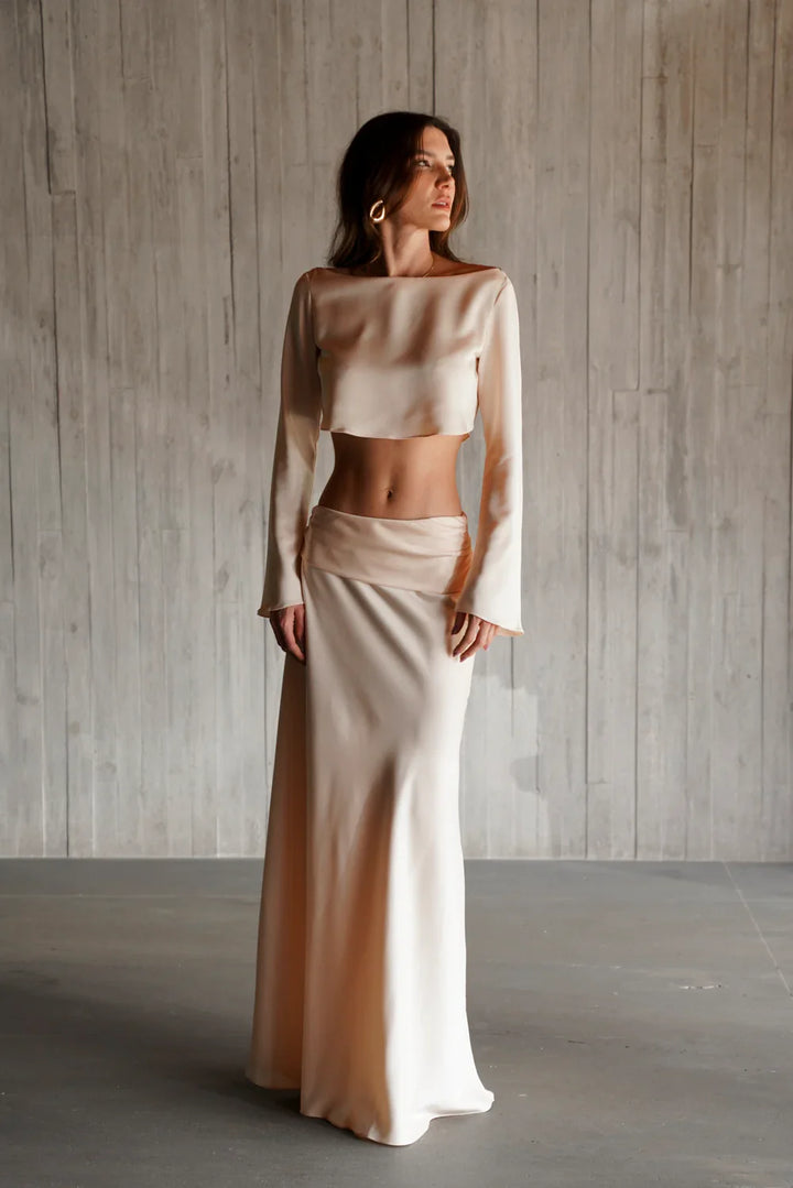 Conjunto produzido em cetim.
